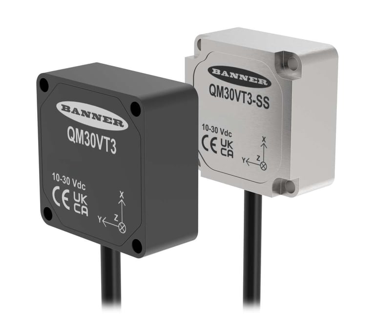 Sensores de vibração para automação industrial: Os sensores de vibração da Banner são projetados para monitorar a saúde de máquinas industriais com componentes rotativos, detectando alterações sutis que podem indicar desgaste, desalinhamento ou falhas mecânicas.